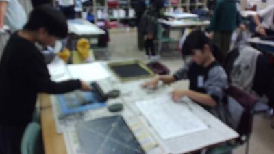 今日は完成目指して、多くの子が「刷り」を進めていました。