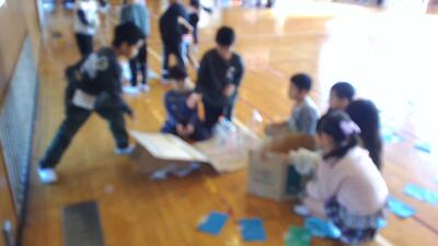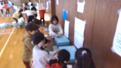 2年生が自分たちで作ったおもちゃを使って、1年生と交流するおもちゃランドを開催しました。