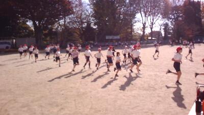 順位を競うのではなく、学年ごとに時間を決めて、個人個人どれだけ走れるかを目標に取り組みます。
