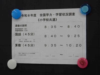 本日「全国学力学習状況調査」が行われ、国語と算数の調査がありました。