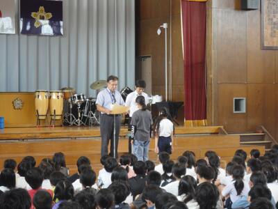 10月全校集会 投稿: 神根小学校 (10/07) カテゴリー: 今日の出来事 10月の全校集会を行いました。 今回は校長より音楽会に向けての話といじめ防止に関する講話と表彰、生活目標の話を行いました。 表彰は、夏休みの読書感想文についてです。 集会を通して全校の話を聞く姿が立派になってきたことを感じます。 今月の生活目標は「身の回りの整理整頓をしよう」です。 整理整頓が意識したいという児童がたくさんいました。 ぜひご家庭でも整理整頓についてお声かけください。 Tweet -
